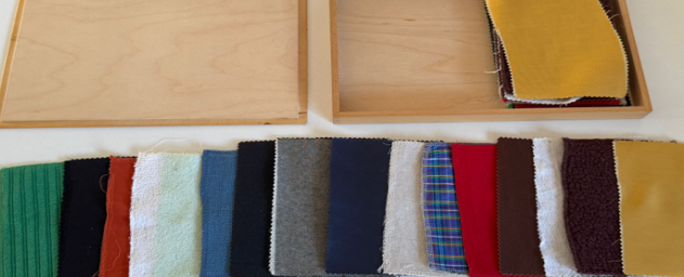 - Odaberite 3 do 5 različitih tkanina – birajte one koje se jasno razlikuju teksturom (npr. svila, pamuk, lan, vuna, pliš). Pripremite po dva primjerka svake vrste.